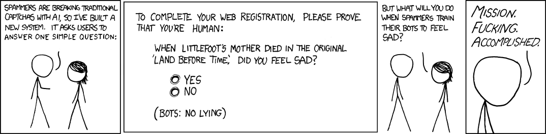 Person 2: But what will you do when spammers train their bots to feel sad?